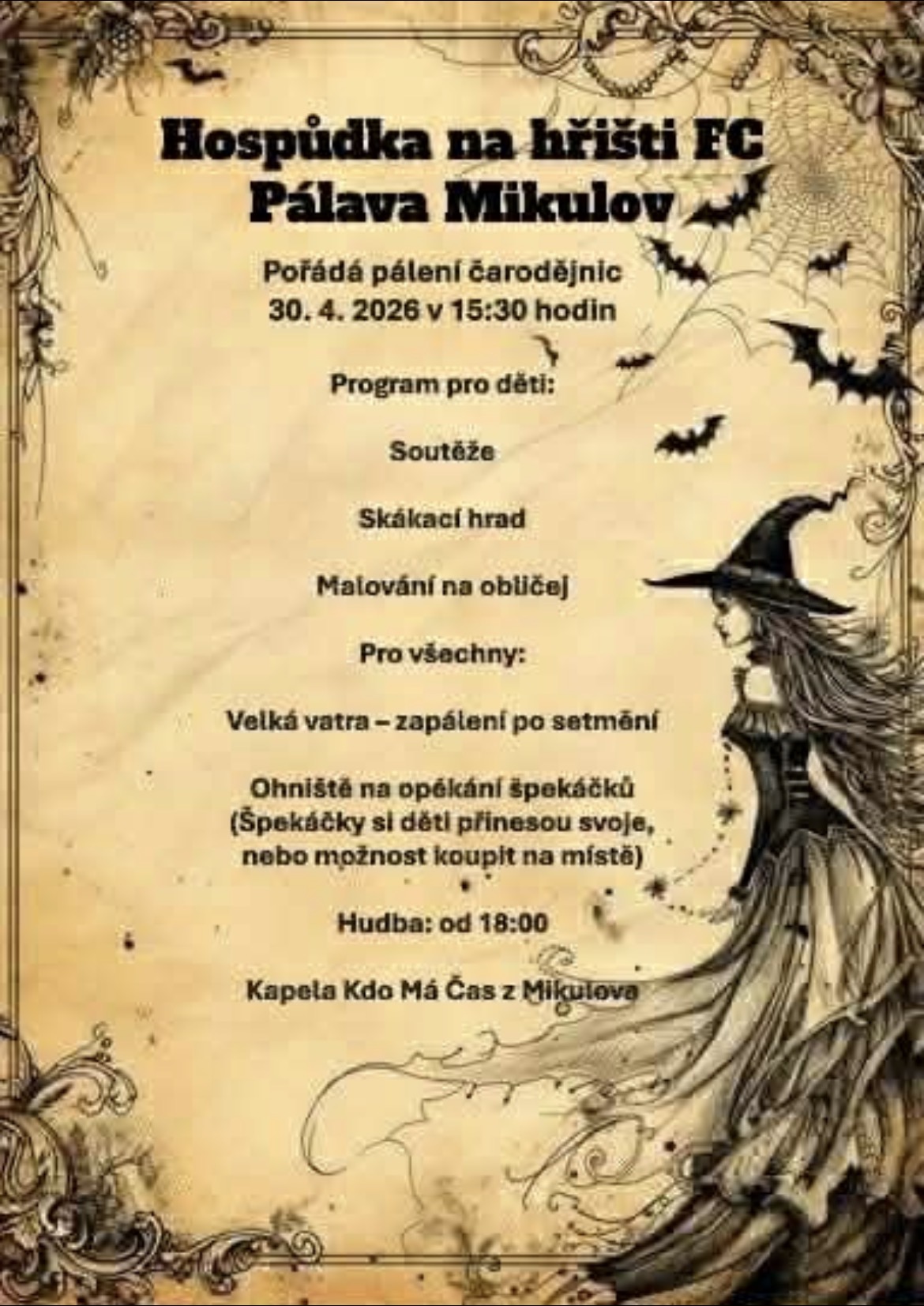 Přijďte si užít kouzelný večer s námi a oslavit tradiční pálení čarodějnic!